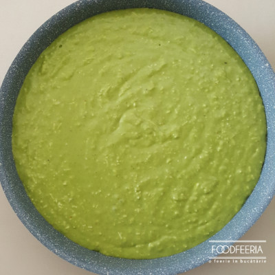 Spanacul spălat și uscat se blenduiește împreună cu smântâna pentru gătit până când este foarte bine mărunțit. Practic trebuie să se transforme într-o smântână verde. Ah, uitați-vă și voi ce culoare are! O ador! 🙂 și e fără filtre, promit!